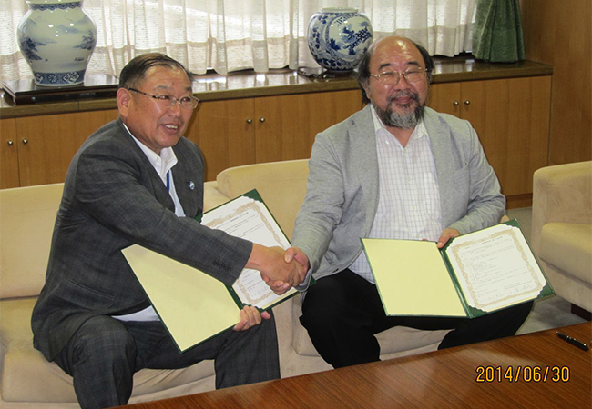 JAGA(柴健次会長)は、6月30日(月)に愛媛県砥部町役場において、砥部町(佐川秀紀町長)との間で、砥部町バランスシート探検隊事業に関する協定を取り交わした。同町は習志野市が千葉大学と連携して実施しているバランスシート探検隊に関心を示され、全国2番目となるこの事業展開を決断されました。JAGAの大塚成男理事と宮澤正泰理事が本事業を具体的に支援し、8月18日から20日にかけて探検隊事業を実施することになっています。町長との調印式には記者会見も行われ、翌1日の愛媛新聞で大きく取り上げられたところであります。