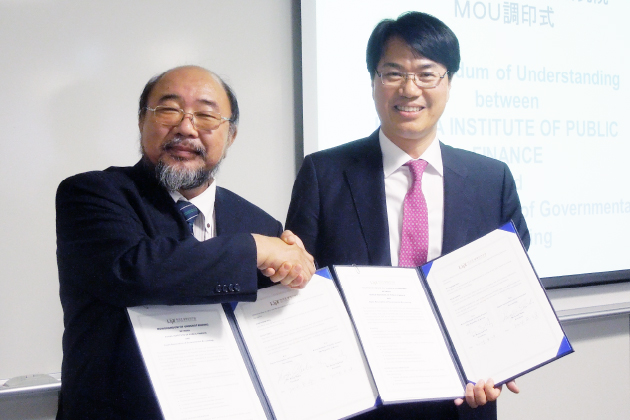講演会後にはJAGA柴健次会長と韓国租税財政研究院Oak院長との間でMOUの調印式を行いました。その後、”楠亭”(早稲田キャンパス 大隈会館内)にて懇親会を行い親しく意見交換しました。